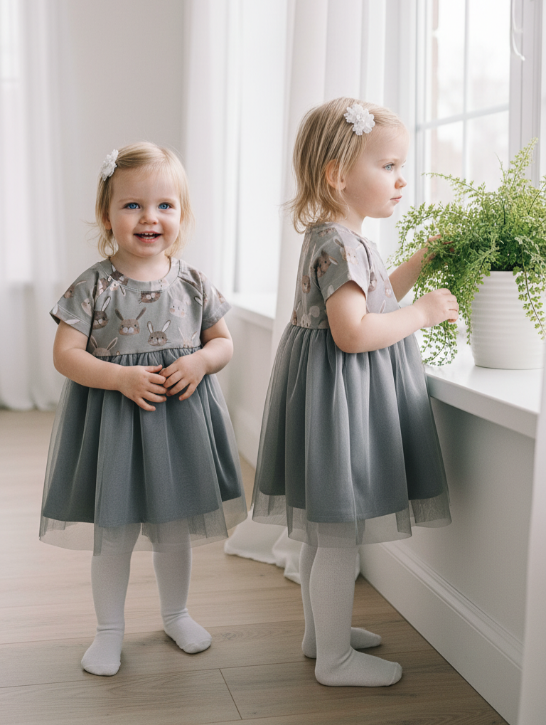 Kleita ir šūta no augstas kvalitātes sertificēta kokvilnas cilpiņtrikotāžas auduma.
